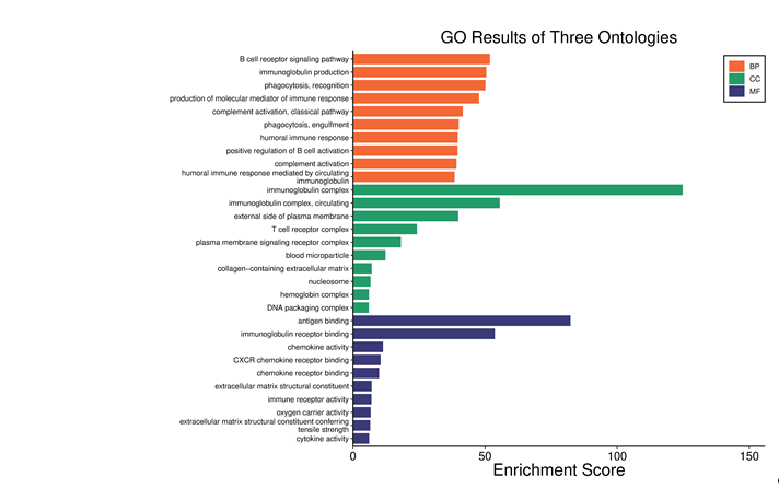 Figure 2: GO enrichment analysis of differentially expressed genes in the synovial membrane of male RA Patients when compared with healthy (non-arthritis) donors.