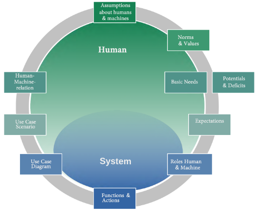 Furthermore, roles and the patterns of interpretation and action associated with them, as well as expectations, can be understood from a psychological and anthropological perspective not only as normative constructs in the service of reducing complexity and providing orientation, but also as a socially established and legitimate form of response to human needs. Humans can therefore be understood not only as beings that can be characterized by potentials (e.g. autonomy) and deficits, but also as beings that are characterized by Needs. Structurally analogous to the discussion of human needs, functional requirements can be identified on the technical side, the fulfillment of which must be ensured for the interaction to succeed. Depending on the type and amount of needs satisfied by the roles in the human-machine relationship, different values can then be inferred.