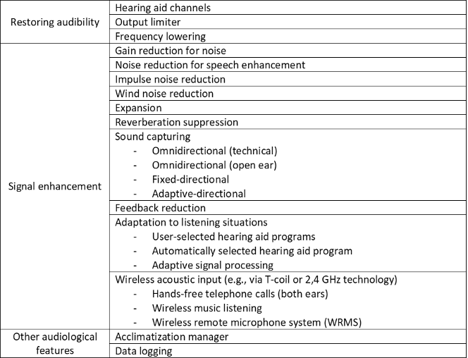 Overview about common audiological hearing aid features