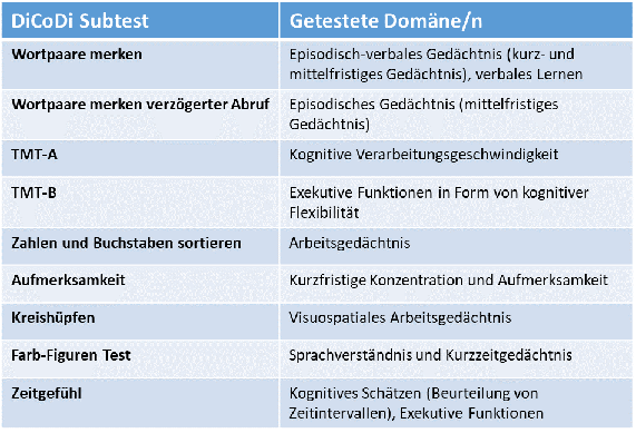 Tabelle 1: Kognitive Domänen des DiCoDi
