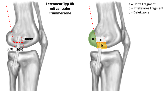 Diskussion und Schlussfolgerung: Die Platten-augmentierte posteroanteriore Schraubenosteosynthese von Letenneur Typ IIb Hoffa-Frakturen mit zentraler Trümmerzone bietet eine höhere biomechanische Stabilität als die isolierte posteroanteriore Schraubenfixation. Während eine zusätzliche laterale Platte oder Doppelplatte die Stabilität des interkalaren Fragmentes und des Hoffa-Fragmentes verbessert, stabilisiert die posteriore Abstützplatte nur das Hoffa-Fragment. Um die Behandlung dieser schwierigen Hoffa-Frakturen zu verbessern, ist eine individuelle Behandlungsstrategie, die auf der Frakturmorphologie und der damit verbundenen Biomechanik basiert, von entscheidender Bedeutung.