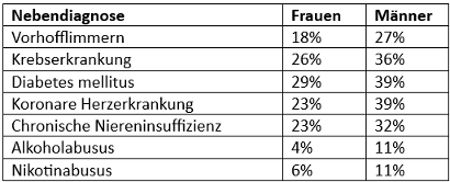Tabelle 1: Nebendiagnosen bei PatientInnen mit PHF