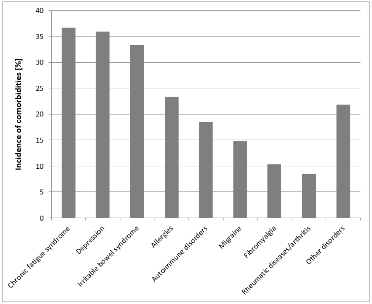 Even Paracelsus, the great Renaissance physician, purportedly told his patient, “You are the physician. We doctors are merely your assistants.” This suggests that to get the best outcomes of a therapy, patients should be involved in the care [5], [6]. In the case of interstitial cystitis this statement is quite appropriate. There is no treatment that benefits all patients. Therefore, multimodal therapy is required to achieve a satisfactory outcome [7], [8], [9]. In this context it is important to mention that comorbidities are common such as irritable bowel syndrome, fibromyalgia, chronic fatigue syndrome, allergies, autoimmune disorders, rheumatic diseases and migraine headaches, as well as mental health disorders such as depression (Figure 1). Based on these relations, it has been suggested that the disease may progress from an organ-specific phenotype (isolated bladder symptoms) to the regional (bladder symptoms plus irritable bowel syndrome,) and systemic phenotype (bladder symptoms plus irritable bowel syndrome plus fibromyalgia, chronic fatigue syndrome, migraines, etc.). This observation does not necessarily apply to all, but can be observed in a subset of patients [4], [10], [11], [12], [13], [14], [15]. Patient self-management can play a substantial role in the diagnosis. Patients should record their observations to keep track of important events [16].