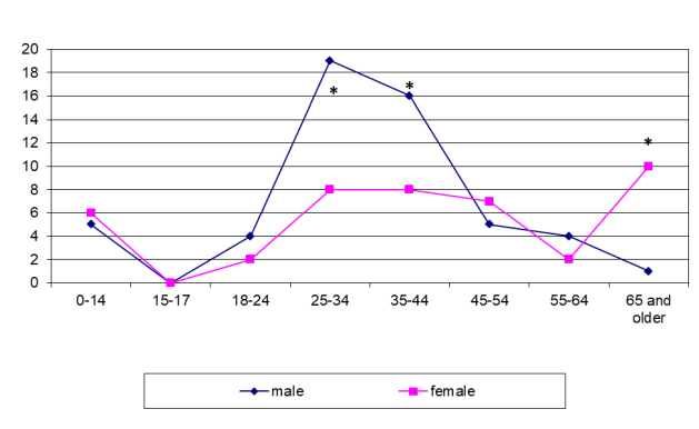 Figure 2: Sex-age characteristics of BJTB patients in Siberia, 2018