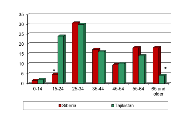 Figure 8: Age characteristics of EPTB patients in Siberia and Tajikistan, 2018