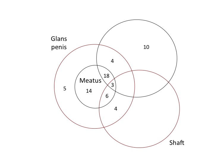 Figure 5: The penile sites affected by lichen sclerosus and the frequency